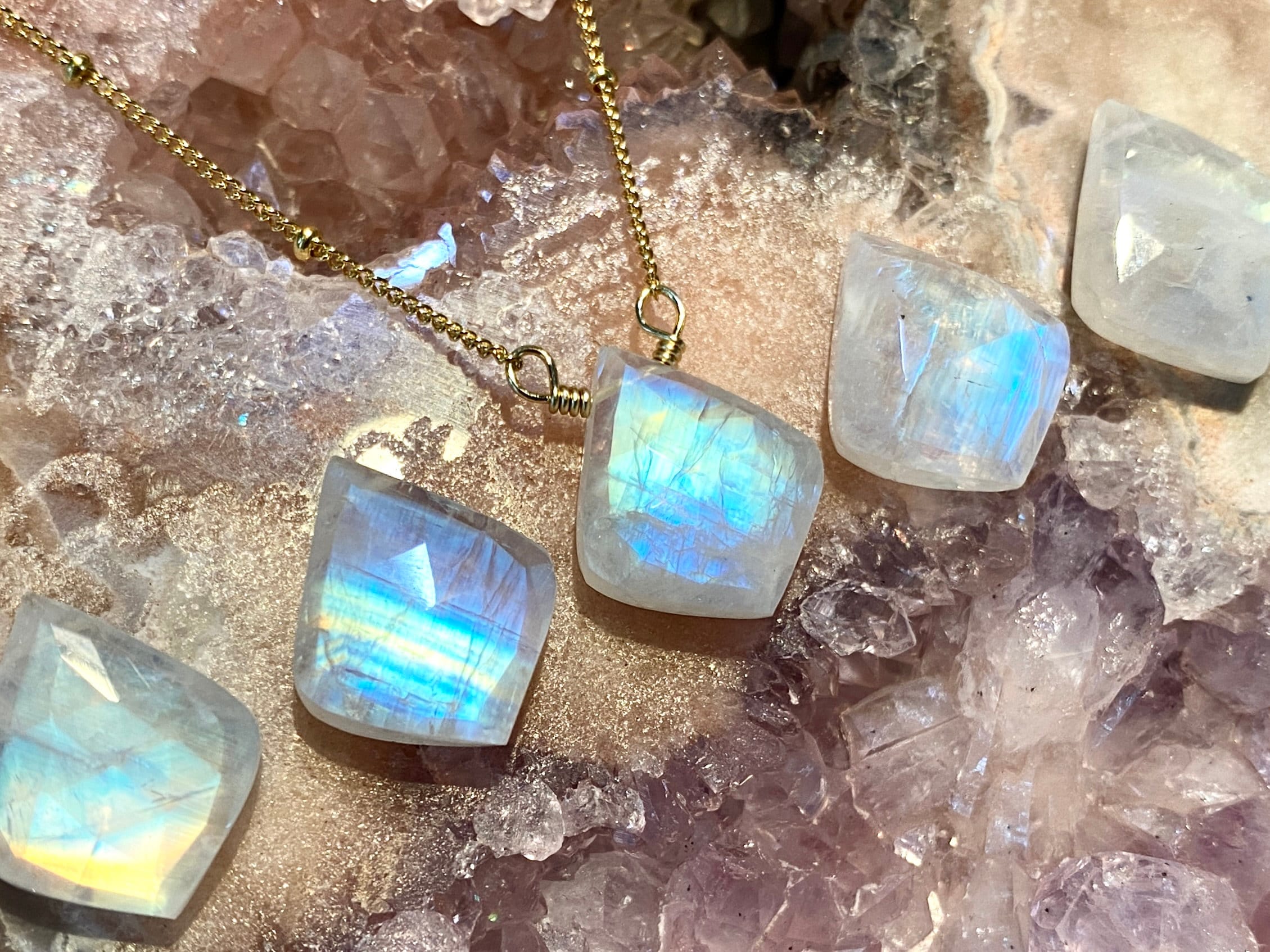 *Internal fracture lines and mineral inclusions in real crystals are NORMAL and are not signs of damage. These fracture lines are actually what cause the iridescence in feldspar minerals such as moonstone and labradorite. Generally the more fracture lines, the flashier the stone. They also give the stones character and show that they are real.