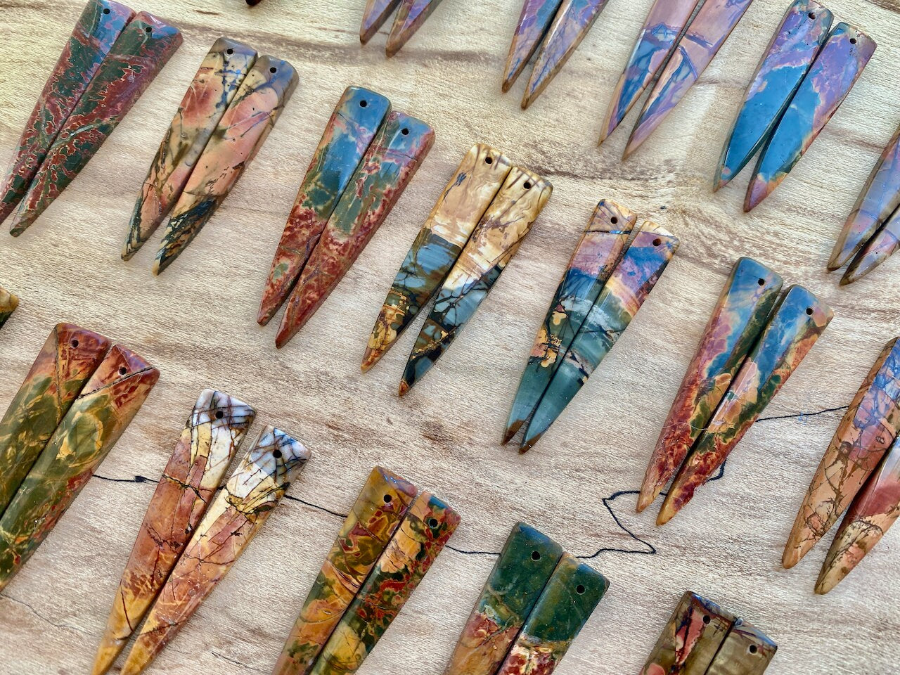 Real Cherry Creek Jasper Dagger Earrings Natural Gemstone Jewelry