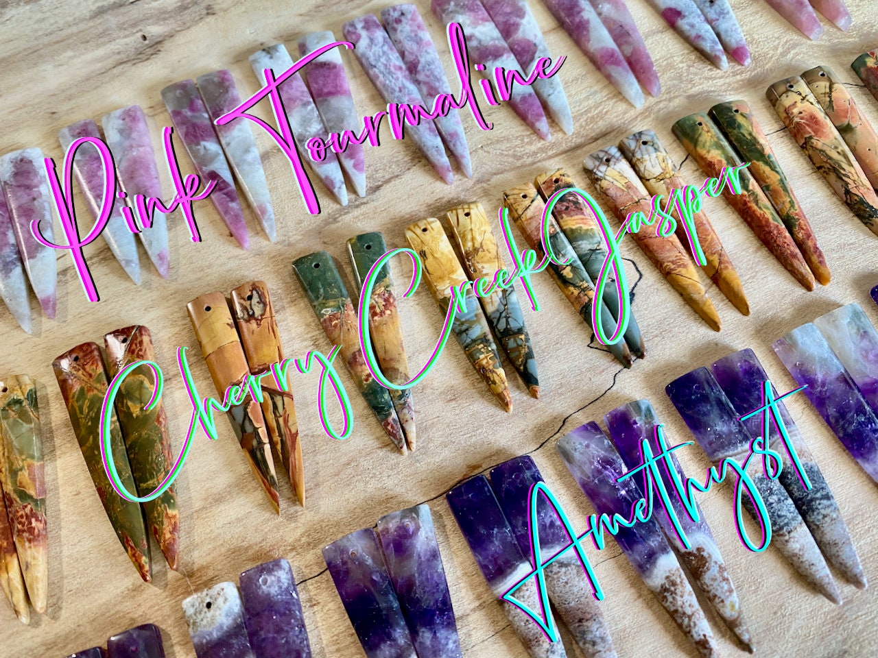 ★ I wire wrap these real crystal spike earrings by hand from raw gemstones which have been cut into a long smooth spike shape (in your choice of Cherry Creek Jasper, Pink Tourmaline, or Amethyst onto rounded spiral earrings hooks. The hooks are available in real sterling silver, real 14k gold vermeil, or real 14k rose gold vermeil. Earring hooks are hypoallergenic and great for sensitive ears! Each stone measures approximately 10mm wide x 45-55mm long. Earrings come in a custom gift pouch, ready to gift or keep!