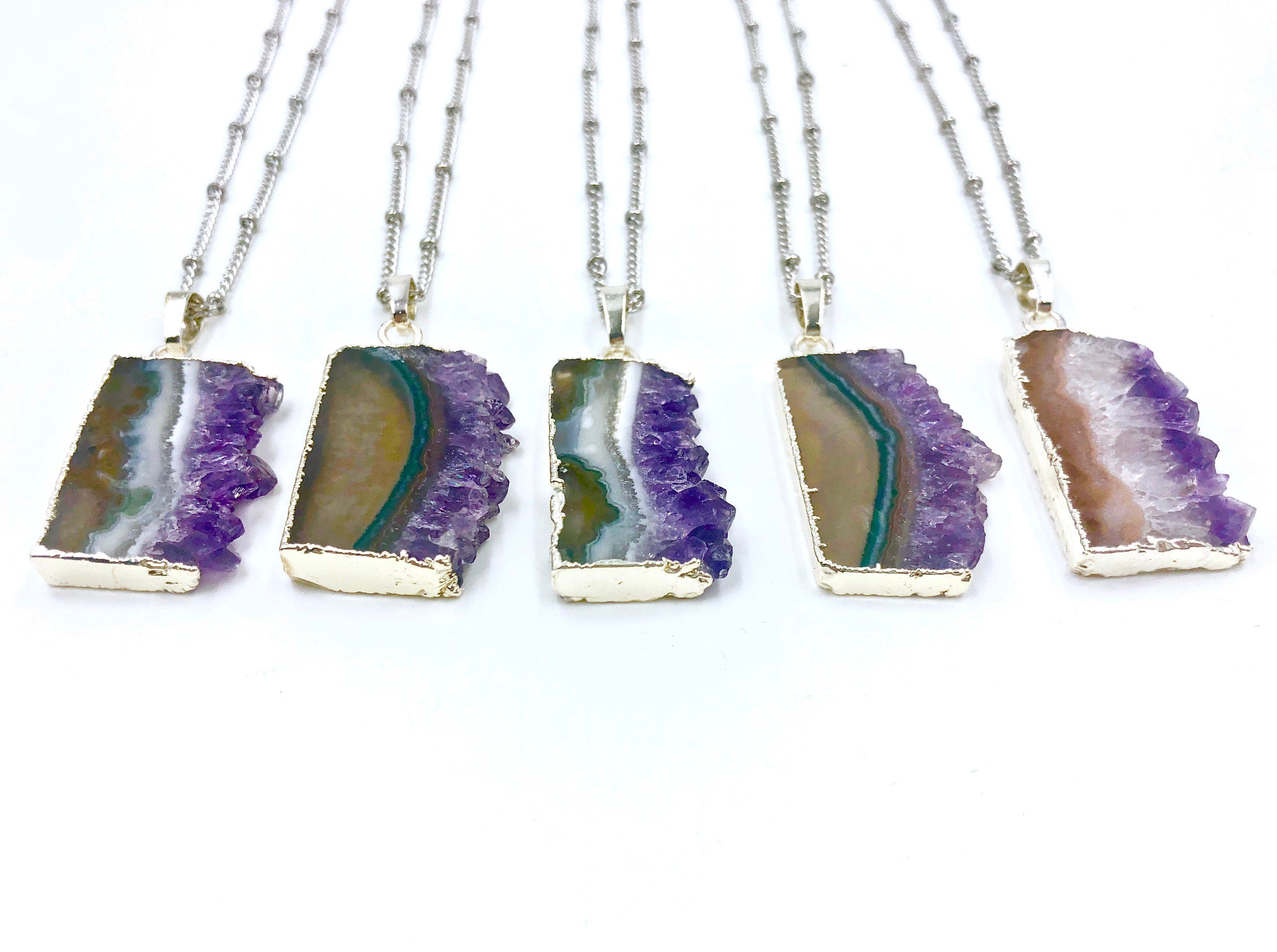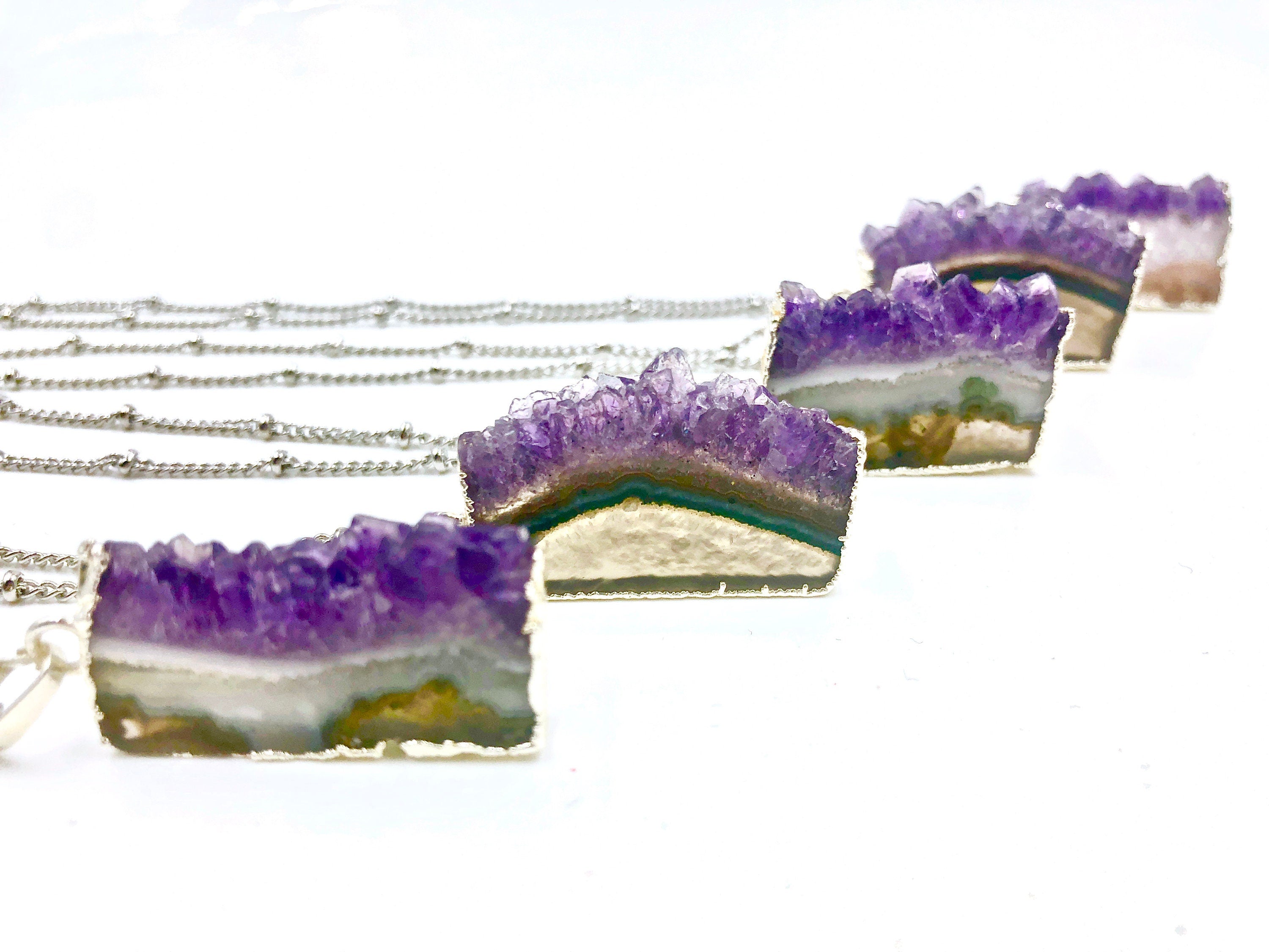 [ Raw amethyst necklace Amethyst geode necklace February birthstone jewelry gifts for her Agate slice necklace Amethyst slice pendant ]