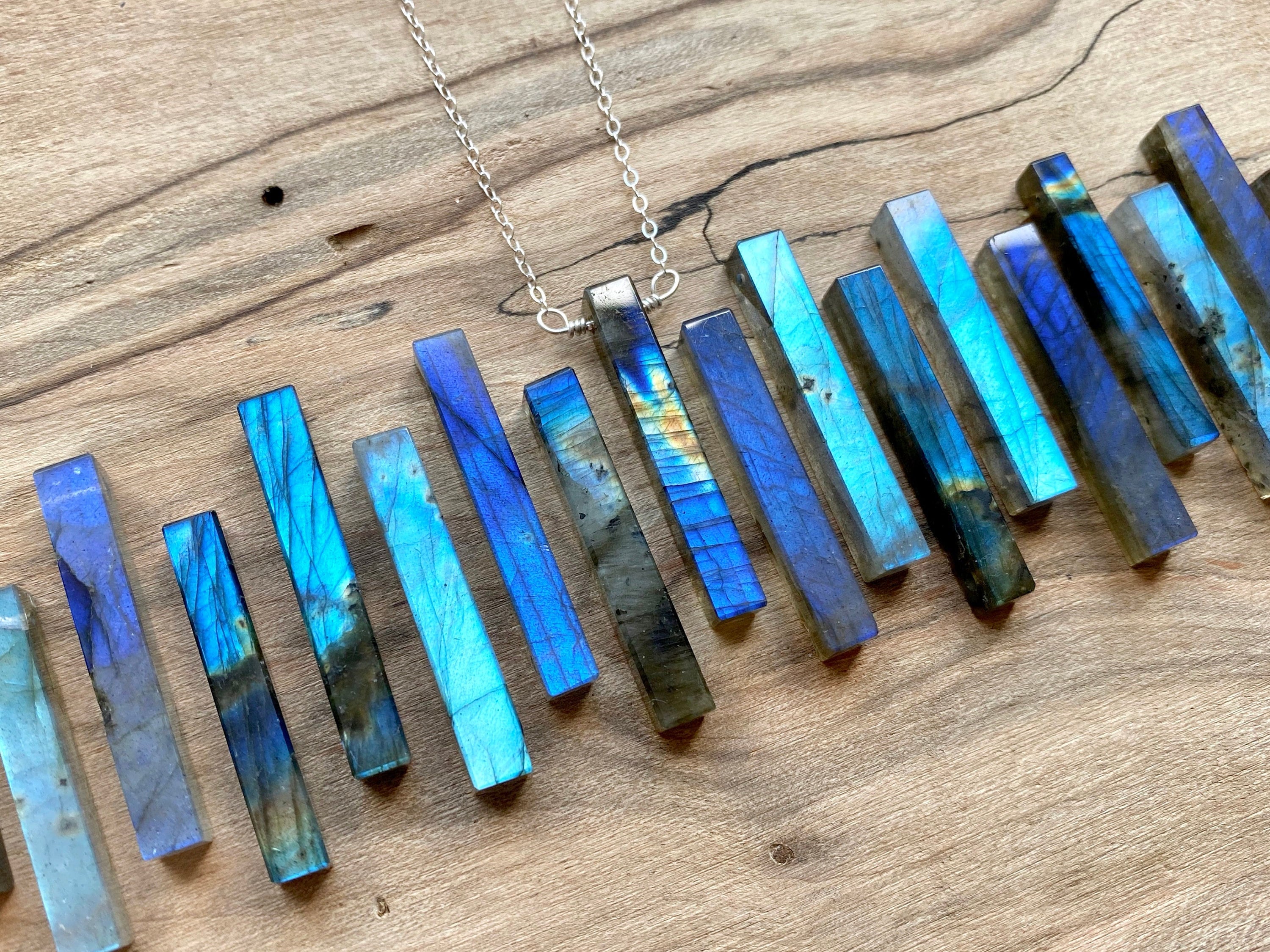 Real Blue Labradorite Cuboid Bar Necklace