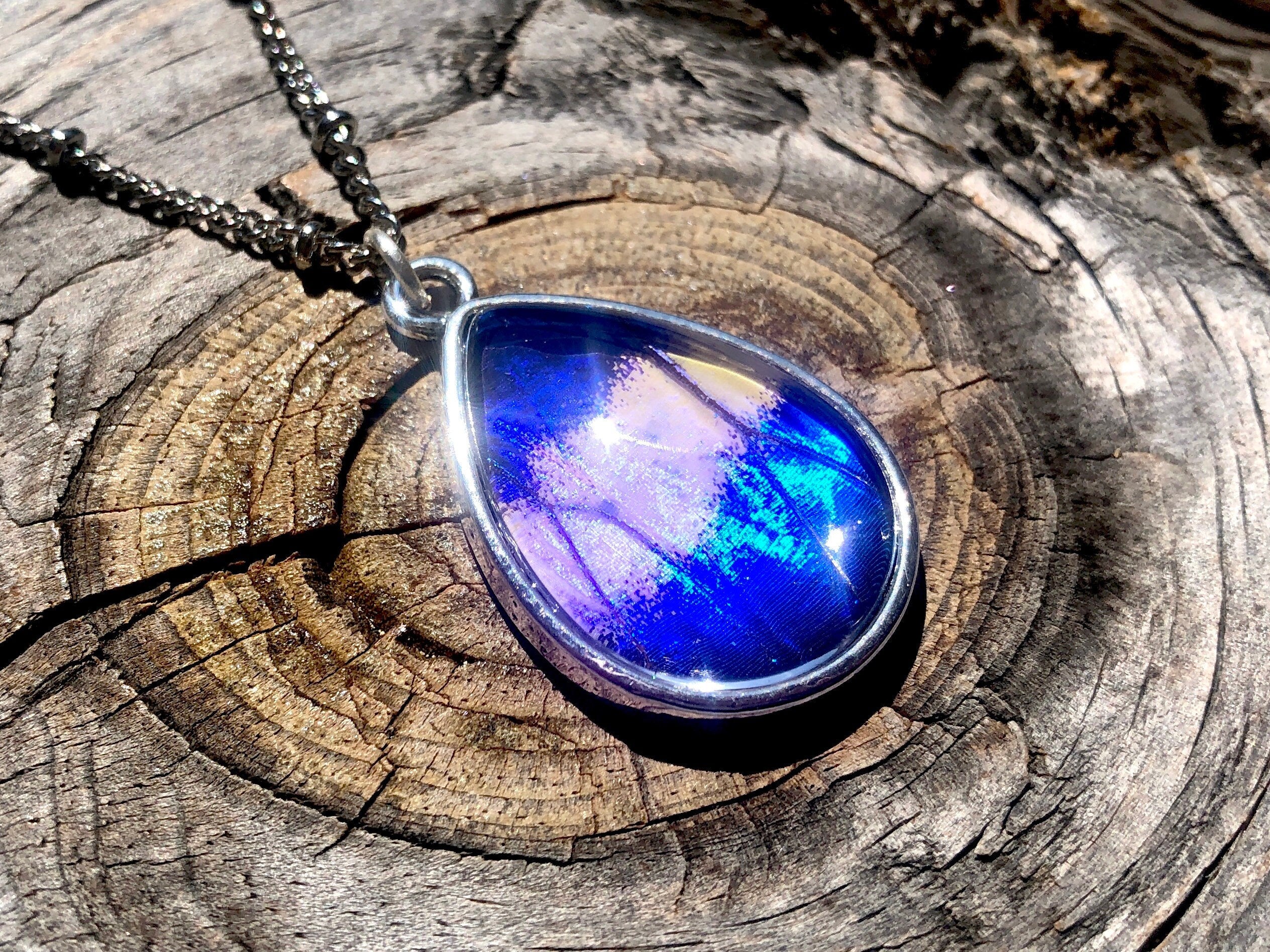 Real Blue Morpho Helena Butterfly Wing Teardrop Necklace