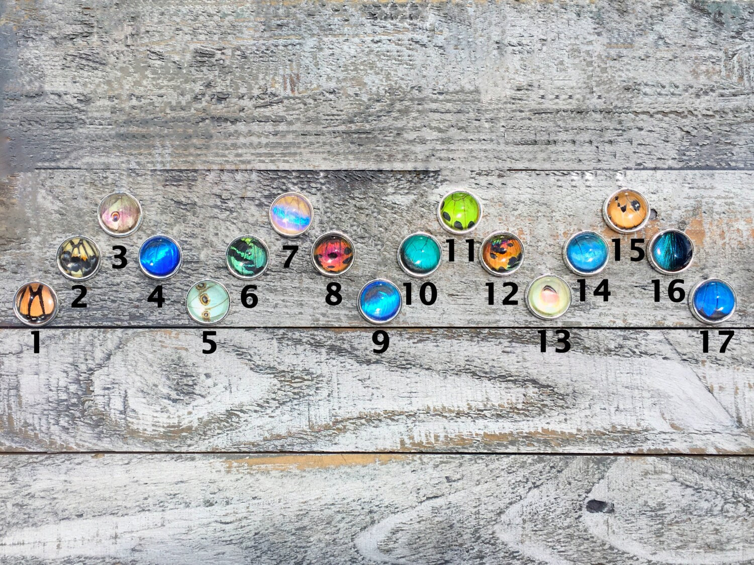 ★ Your choice of REAL butterfly wing embedded under magnified glass! (Read below for more on how I ethically obtain the wings!) These bracelets make perfect unique gifts for any holiday! This is a gift she will truly never forget! Each butterfly wing is expertly embedded under a 20mm magnified glass cabochon and set in your choice of Rose gold, Antique gold, Yellow gold, or Silver plated. The bracelets are adjustable and one size fits most. Each piece comes with its own gift pouch with literature on the species of butterfly and a free die-cut sticker or magnet! These are an ORIGINAL Chrysalis Studios design © 2015.