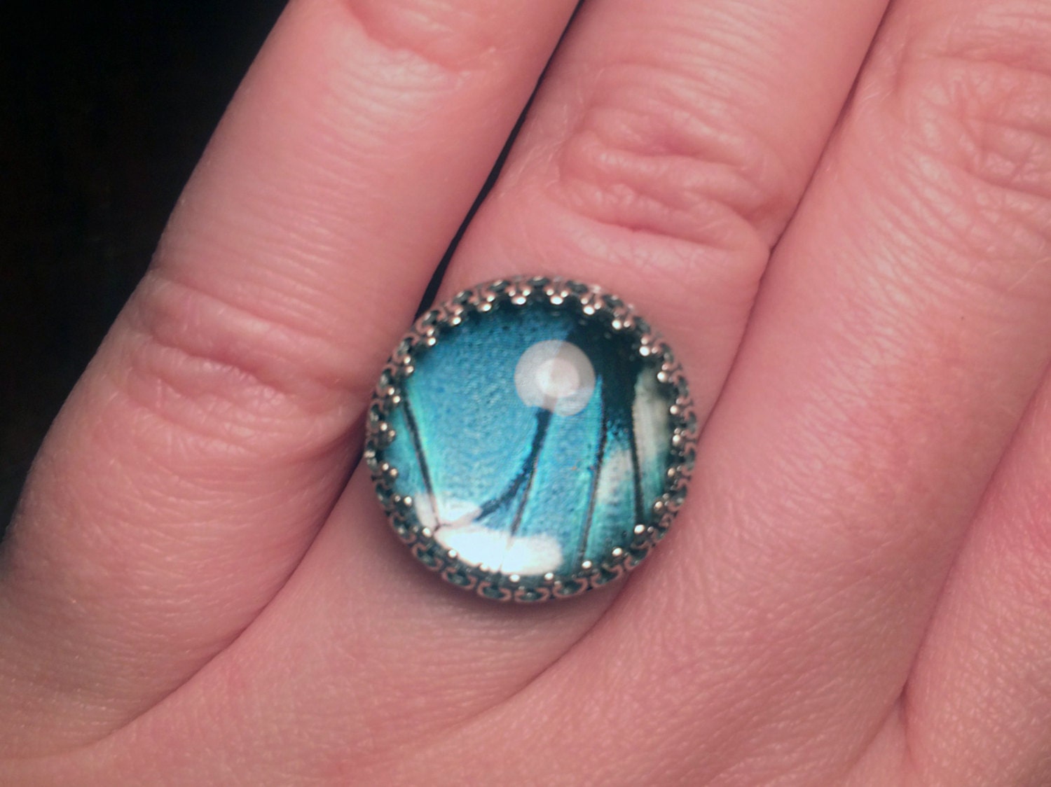 This listing is for one Emperor Morpho butterfly wing ring. To see all my ring options, click here: http://etsy.me/1Kns5vT