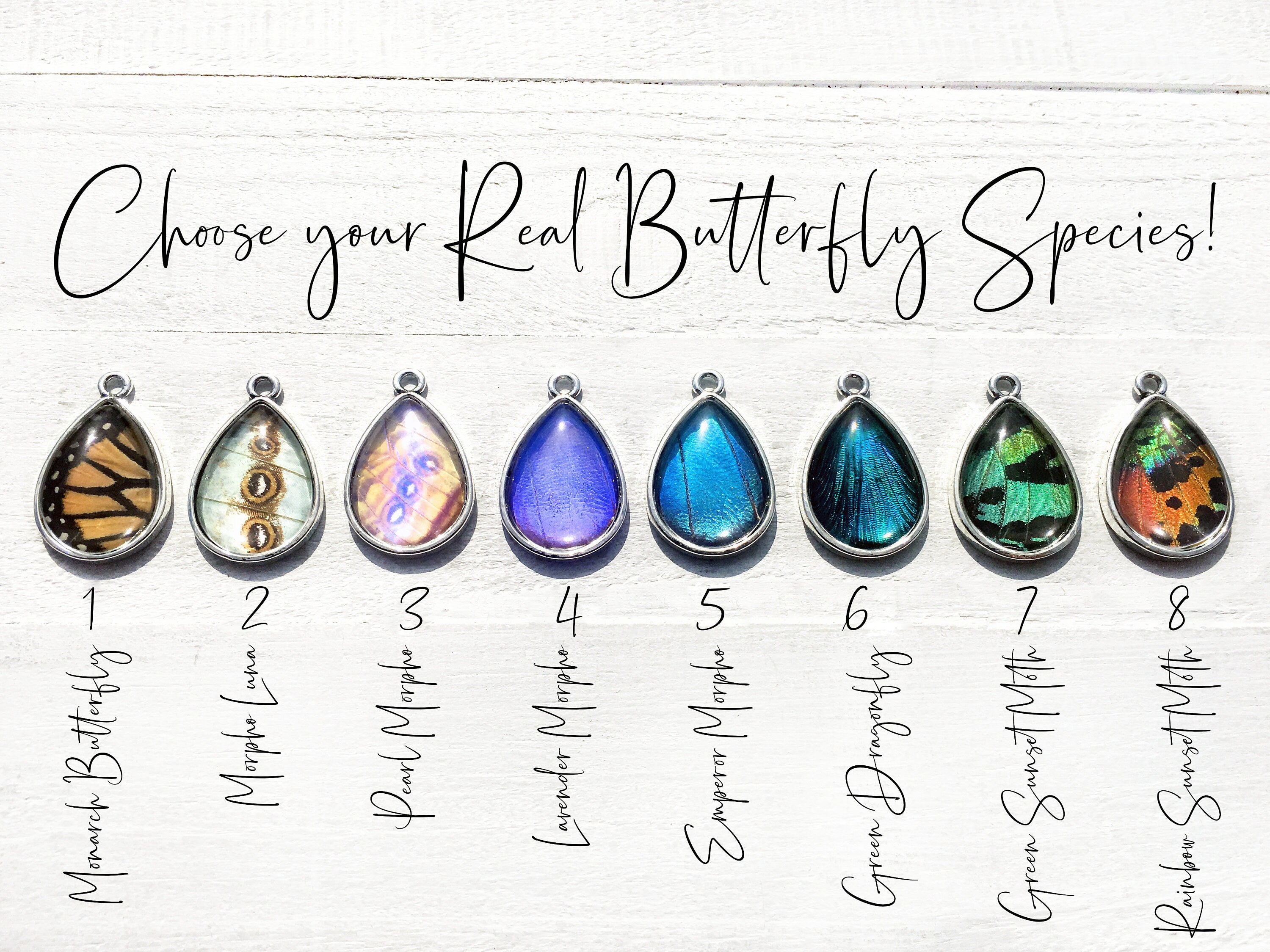 Choose which type of butterfly species you would like in your earrings! (Butterfly wing species / color options going left to right in fourth "numbered" photo):