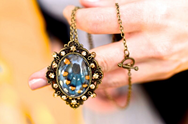 ★ This necklace is made with a REAL Battus Philenor Butterfly wing expertly embedded under magnified glass! (Read below for more on how I ethically obtain the wings!). This butterfly, also known as the "Pipevine Swallowtail", is a metallic steely blue with cute orange & black spots. These butterflies are found in the forests of North & Central America and feed on the flower nectar of lilacs, azaleas, bergamot, viper's bugloss, yellow star thistle, & wild ginger.