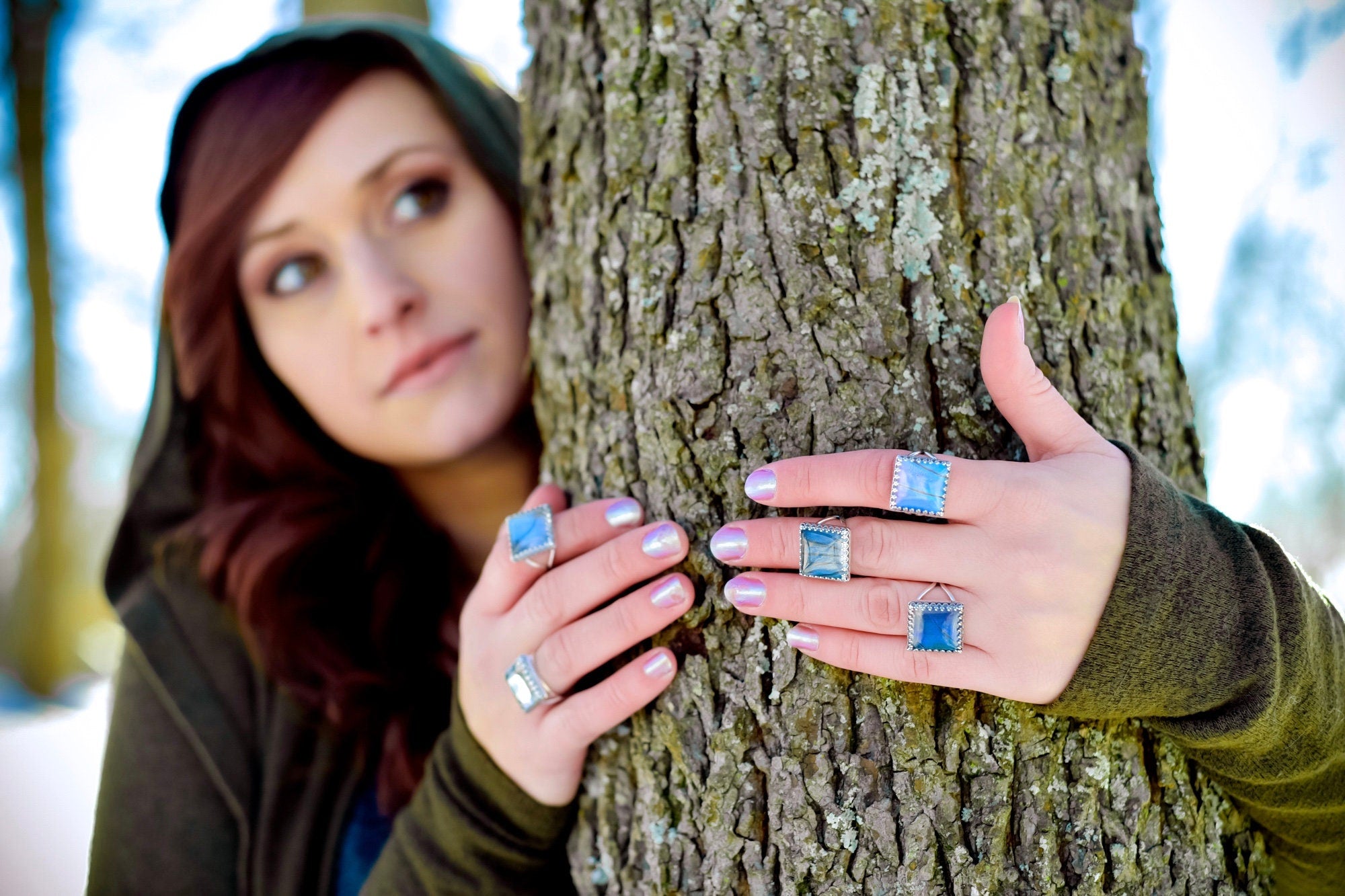 ★ This unique Sterling Silver ring is handcrafted using a REAL Blue Morpho butterfly wing! (Read below for more info on how I ethically obtain the wings!) The butterfly wing is expertly embedded under magnified glass measuring roughly 15mm across. These rings are made out of your choice of genuine .925 stamped SOLID Sterling Silver (Not just silver plated!) 14K Gold Filled, OR Real 14K Rose Gold filled, and are adjustable to fit sizes 6 - 10.