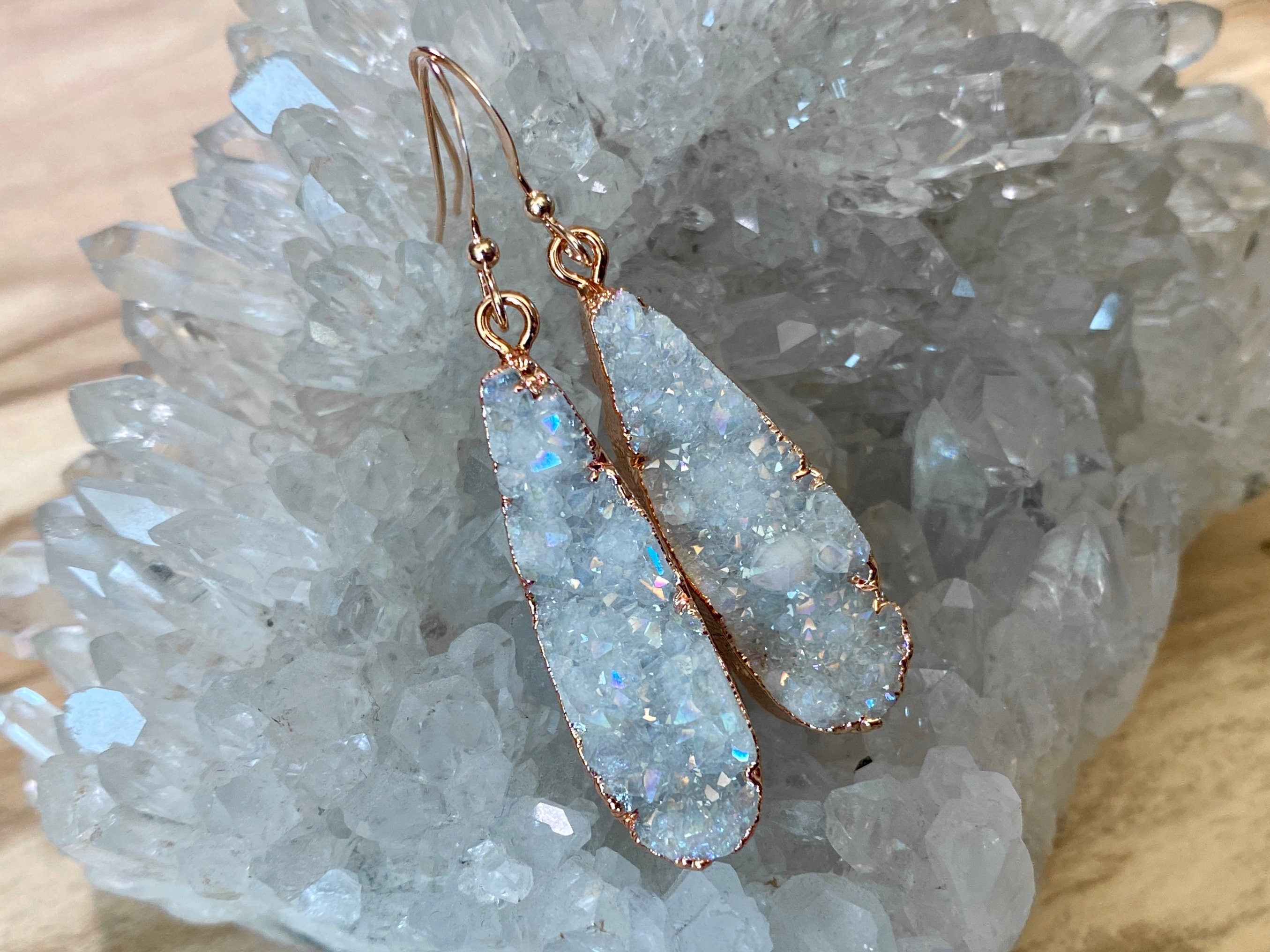Real Druzy Quartz Crystal Teardrop Earrings
