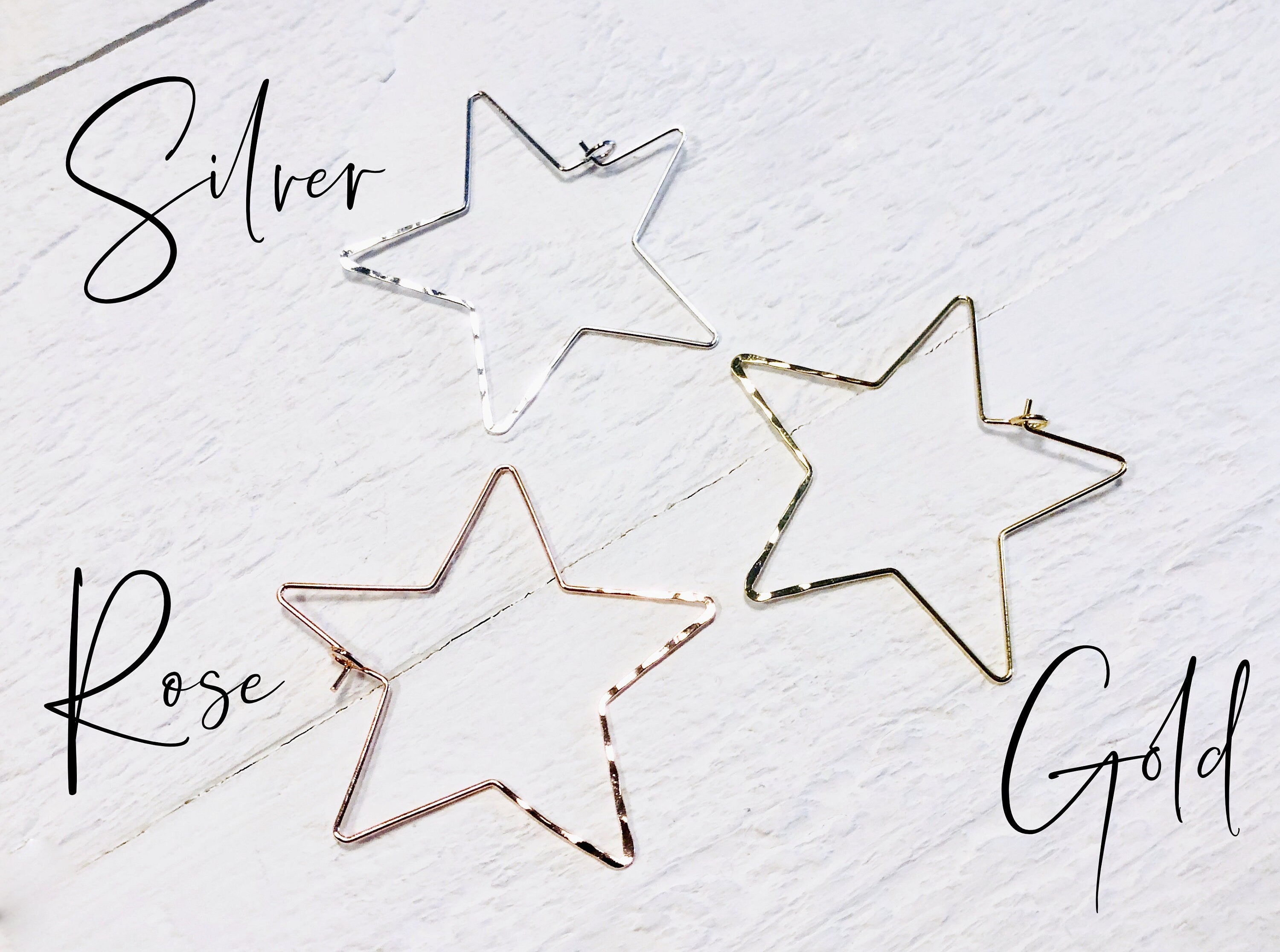 ★ AS SEEN ON "THIS IS US"! I handcraft these cool star hoop earrings by wire wrapping your choice of a labradorite, moonstone, ametrine, fluorite, emerald, or rose quartz crystal cut into faceted triangles onto a pair of star shaped hammed hoops! Hoops available in your choice of Gold plated, Rose gold plated, or Silver Rhodium plated. Each earring measures approximately 45mm / 1.8 inches long. Earrings come in a custom gift pouch, ready for gifting or to keep!